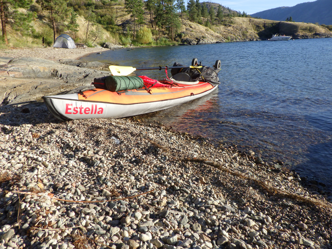 Voici mon kayak pneumatique avec marquage de la société Stingwrap, sur le lac Okanagan dans la vallée de l'Okanagan, Colombie-Britannique, Canada. La qualité du marquage est super ! Merci beaucoup ! Voici le Reluctant Dragon Cove.